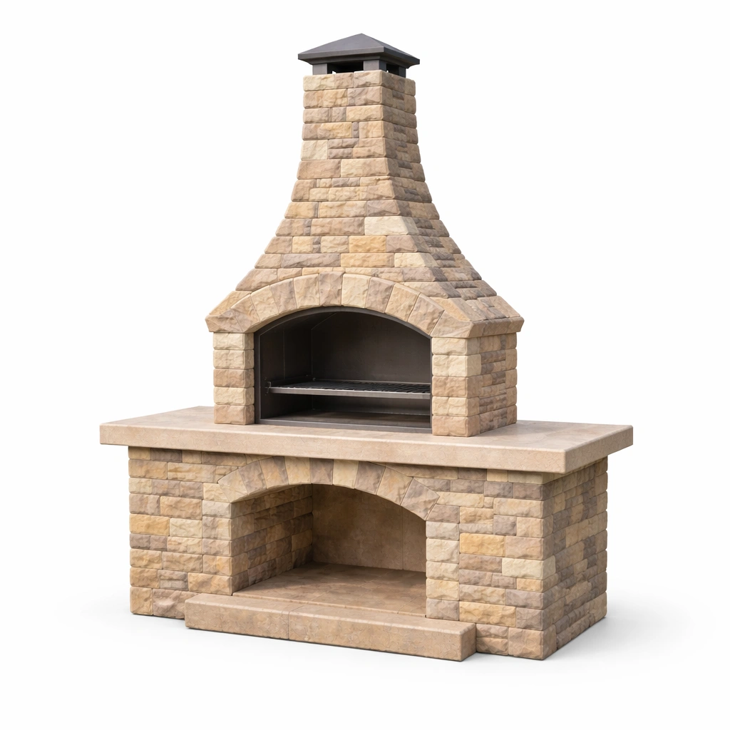Barbacoa de piedra natural para exterior con chimenea