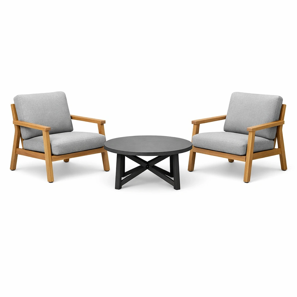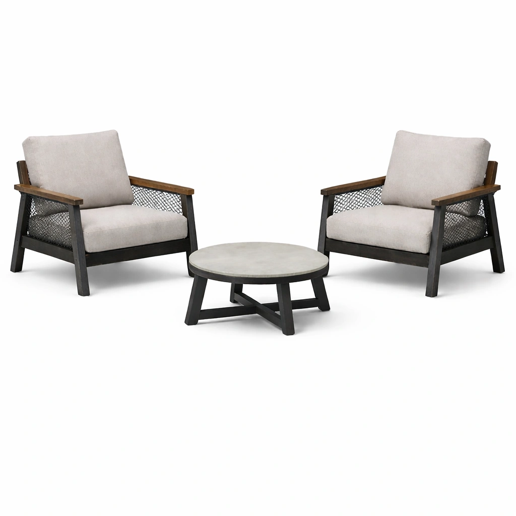 Conjunto de jardín de Sillones de Madera y Mesa de Centro de Metal