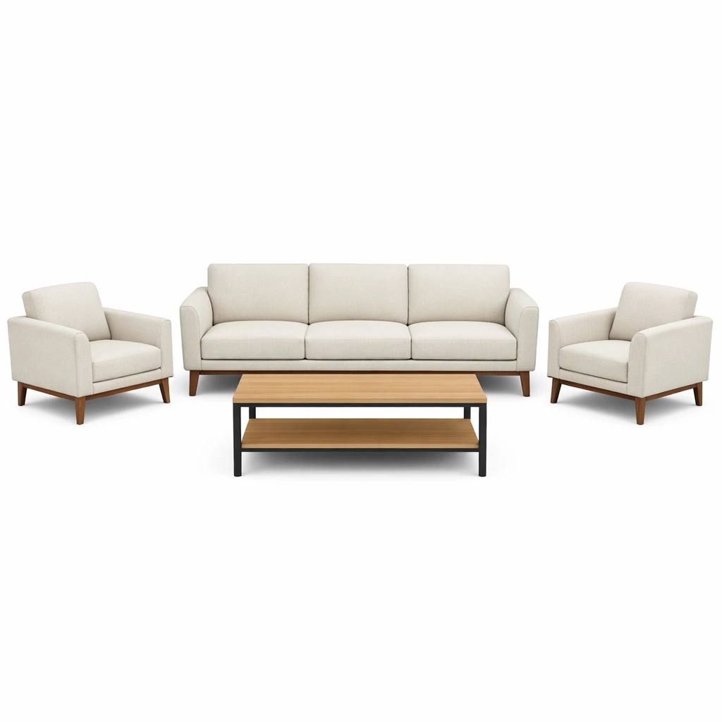 Conjunto de sofá de Tela Beige con Mesa de Centro