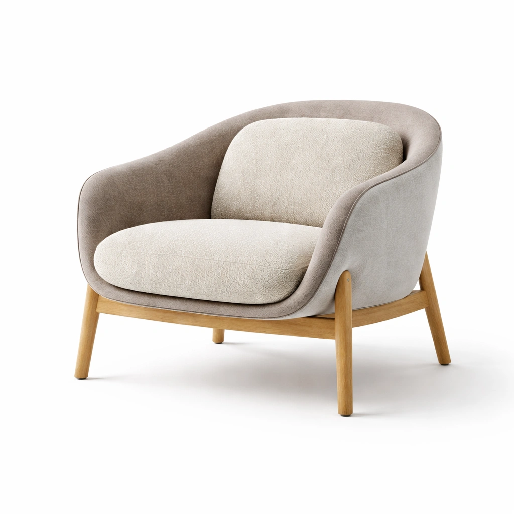 Sillón de tela de poliester con estructura de madera de haya